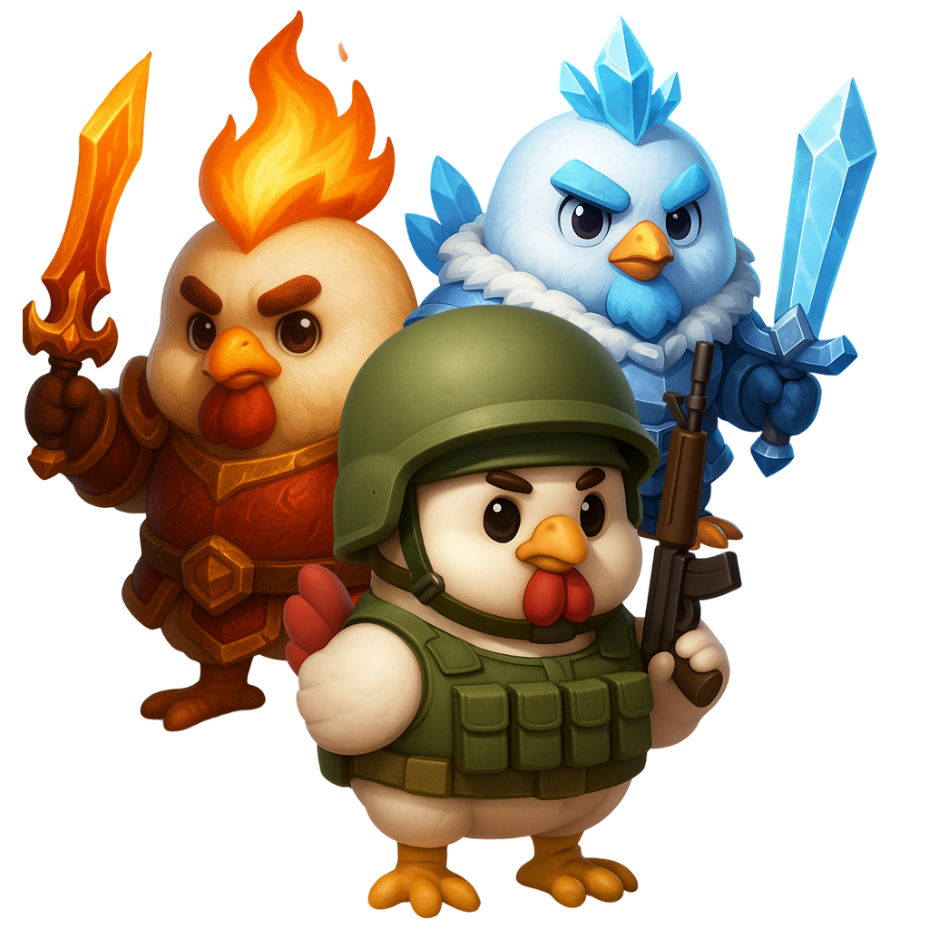 - c.Chick Selection. A dialog where players can choose from four types of chickens, each with unique traits.